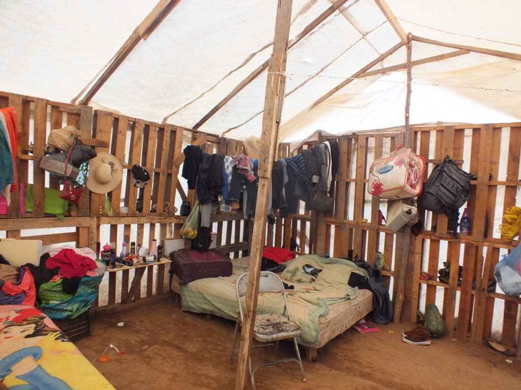 When Pastora Maria submitted her application, the condition in which Tina and her family were living put her at the top of the list. Their home was made of wood pallets, attached together and covered with thick plastic, and that’s all. In that one small shelter they had their beds (thin mattresses over boards of wood), their kitchen (a small gas stove), their clothes hung on strings and any other belongings they had tied up in hammocks or stacked on the bed so as to not be left on the dirt floor. Their need was great.